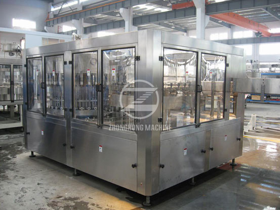 1、瓶装水生产线整机采用卡瓶颈悬挂运行工态设计,从而使瓶在高速运行状态下平稳、可靠,同时大大减少了变更件的数量使更换瓶型时更加方便、快捷。